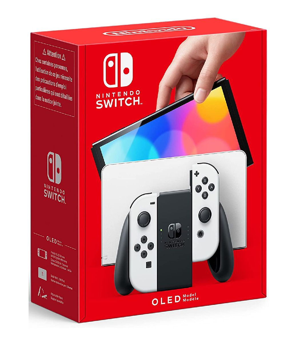 Avec Nintendo Switch – Modèle OLED, vous pouvez jouer à vos jeux préférés sur un écran OLED de 7 pouces aux couleurs intenses quand, où et avec qui vous voulez. Nintendo Switch (modèle OLED) possède un écran OLED de 7 pouces avec un cadre plus étroit. Les couleurs intenses de l’écran et son contraste élevé offrent une expérience de jeu immersive en mode portable et en mode bureau, que vous soyez en train de courir à une vitesse époustouflante ou de fuir des ennemis. Ouvrez le stand, donnez une manette à un autre joueur, regardez l’écran ensemble et jouez contre ou avec l’autre quand et où vous le souhaitez. Configurez le large support réglable de manière à profiter d’une expérience de jeu agréable en mode table avec l’angle de vision souhaité. Réglez le large support réglable de Nintendo Switch (modèle OLED) pour profiter d’une expérience de jeu agréable en mode table avec l’angle de vision souhaité. Die Station pour Nintendo Switch (modèle OLED) possède deux ports USB, un port HDMI pour se connecter à un téléviseur et un nouveau port LAN pour une connexion Internet stable en mode TV. Nintendo Switch (modèle OLED) dispose de 64 Go d’espace de stockage interne. L’espace de stockage existant peut être étendu à l’aide d’une carte microSD compatible (vendue séparément). Téléchargez vos jeux préférés et jouez-y quand et où vous voulez. Profitez d’un son clair lorsque vous jouez en mode portable ou en mode bureau